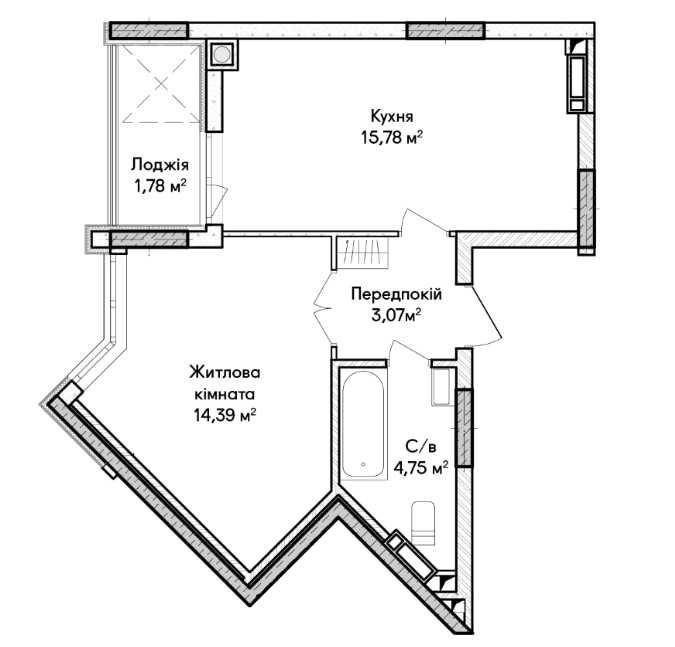 • Загальна площа 39.77 м2
