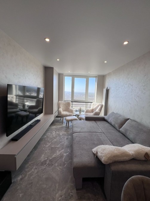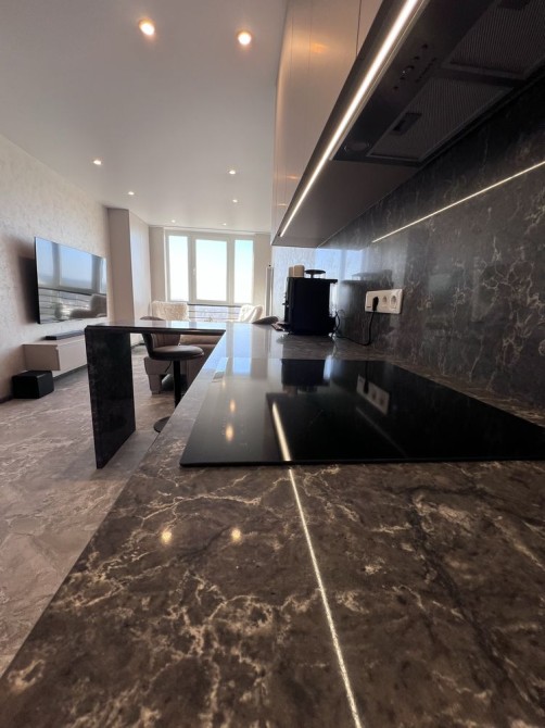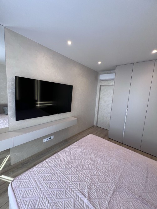 Спальна кімната з двоспальним ліжком, телевізором (65 д) та шафою, простора кухня з обідньою зоною та зоною для відпочинку (великий розкладний диван, смарт телевізор 65 дюймів)+sound bar с/в з тропічним душем, панорамні вікна, 2 кондиціонери. Виконаний сучасний авторський ремонт, в квартирі ще ніхто не проживав !) Вся техніка ще у плівці)