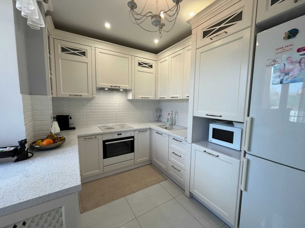 -Красива та якісна вбудована кухня -мрія господині, все продумано до дрібниць, техніка, доводчики фірми Blum, велика посудомийна машина BOSH, плита, дух шафа, великий холодильник, ,витяжка. Все підібрано під дизайн, зручно і практично.