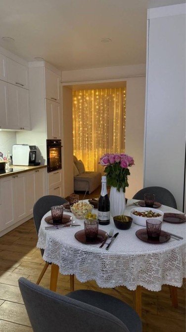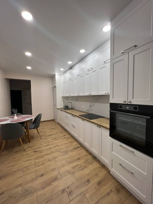 - Кухня: холодильник, індукція, духовка, мікрохвильвка, стіл і стільці