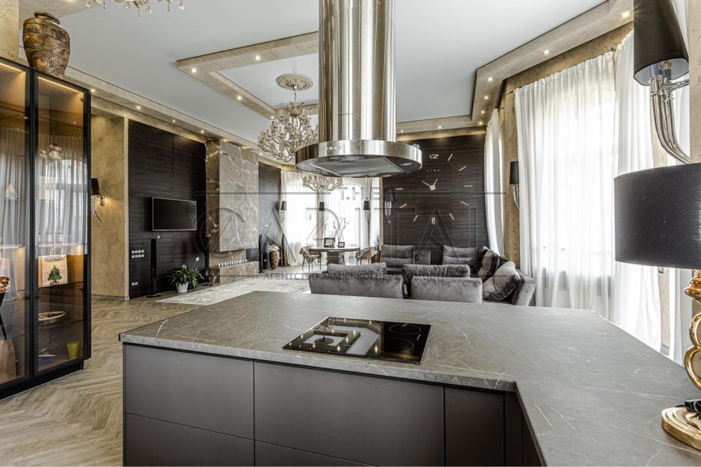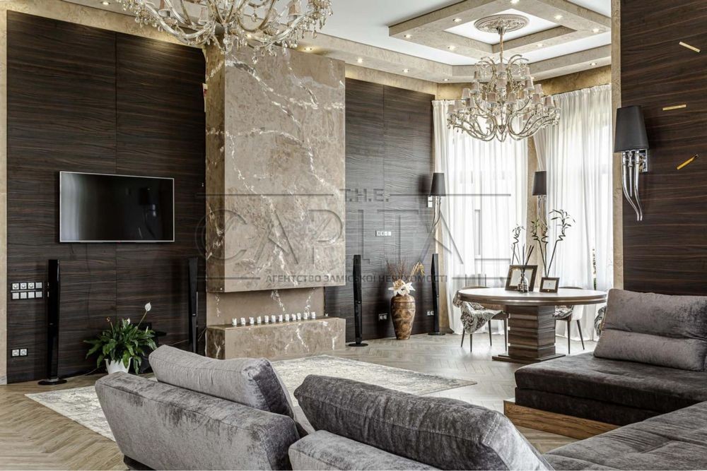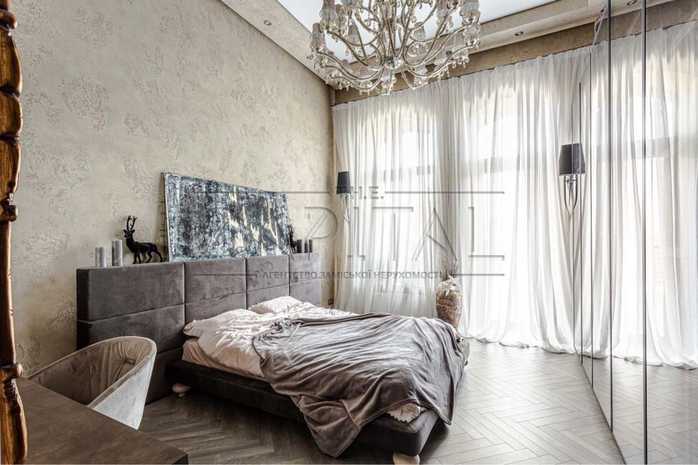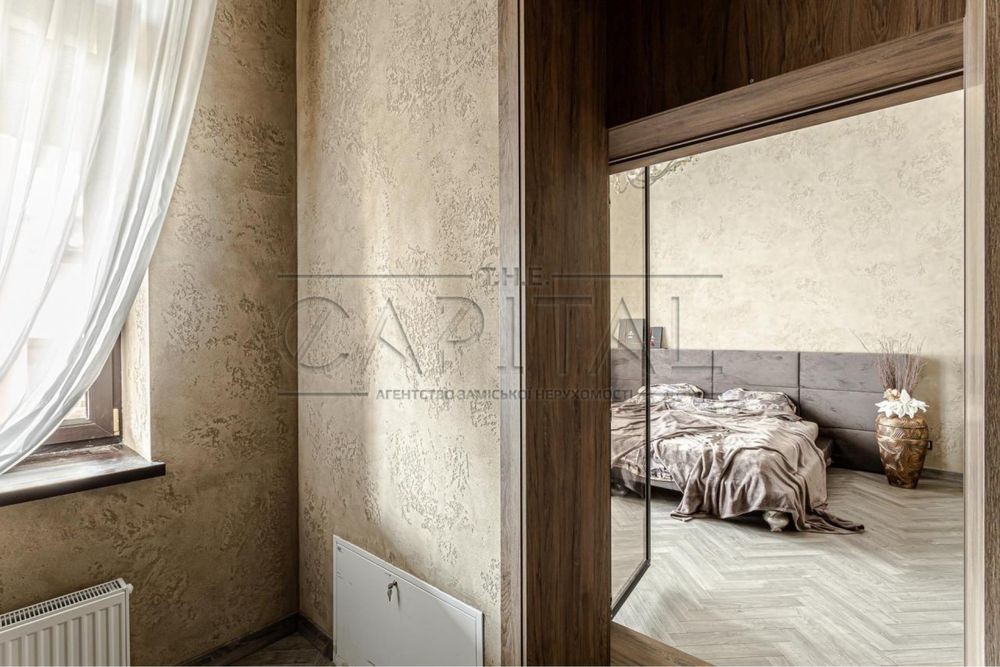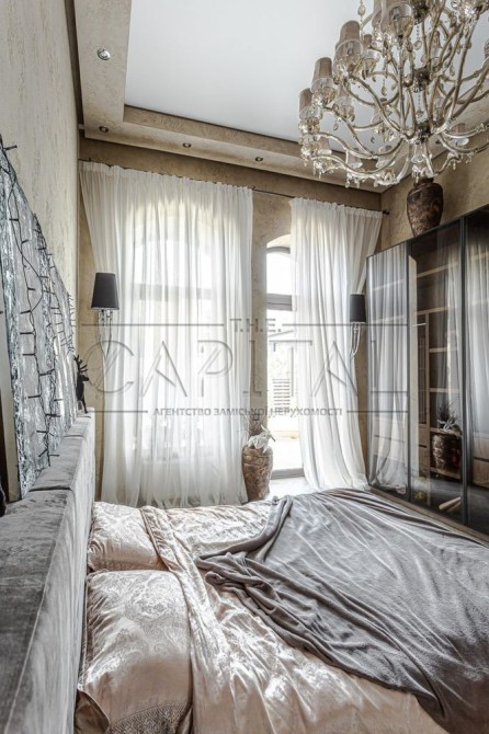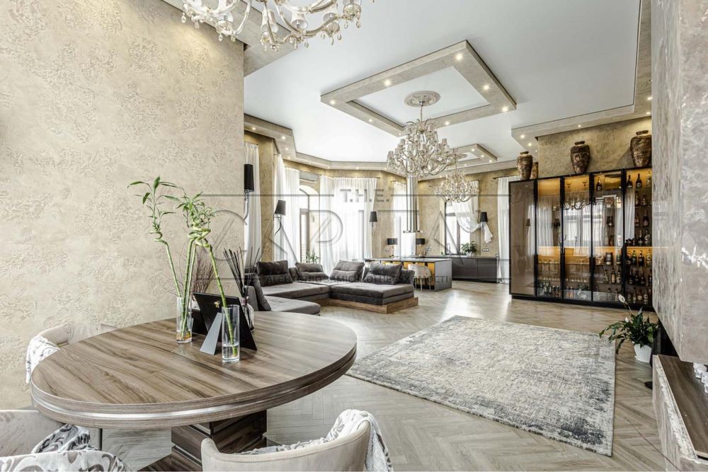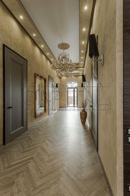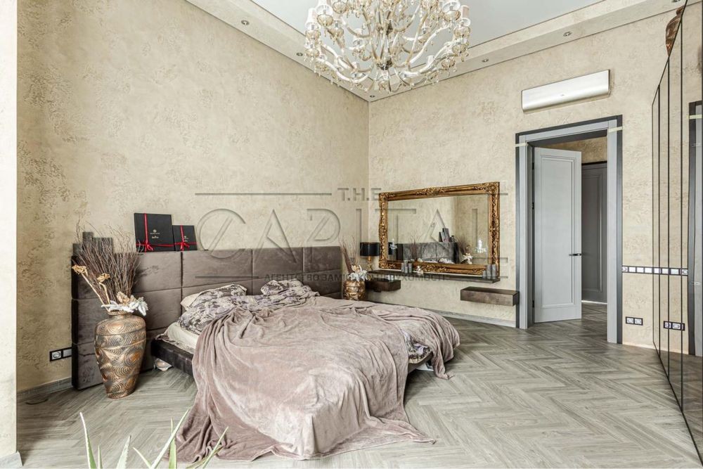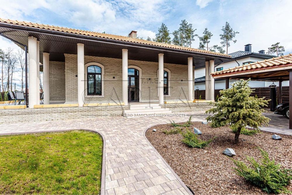 Дизайнерский ремонт 2020 года, укомплектован итальянской мебелью Elisabeth De La Vega, кухня Poggenpohl, освещение Masiero, Massiv, Ipe Cavalli, сантехника VilleroyBoch, гардеробные Zanetti. Планировочное решение дома предусматривает просторную кухню-гостиную с выходом на террасу, три спальни, два санузла, каждая с гардеробной и выходом на террасу. На втором этаже возможно сделать домашний кинотеатр, а так же две дополнительные комнаты. Изюминкой дома является высота потолков в 4.3 метра, дом наполнен естественным светом и теплом. При ремонте использовались качественные отделочные материалы, паркетная доска уложенная в узор французской елки, теплые полы, система очистки воды Organic. Участок 0,17 Га расположен в окружении сосен и дубовой рощи. С восточной части дома расположены зона барбекю и релакса, 200 метров уютных террас. Удобное расположение дома в 8 км от Киева и 15 минут до Печерска позволяют получить массу преимуществ для комфортного проживания.
