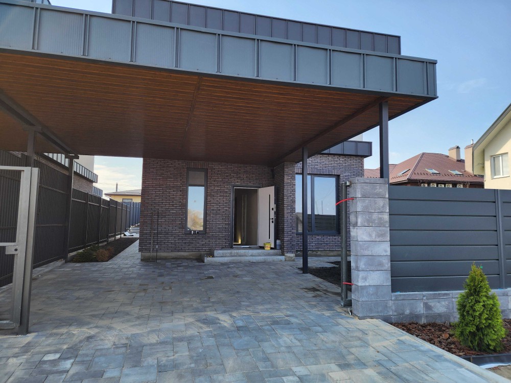 Будинок розташований у спокійному місці з асфальтованим під’їздом, власним подвір’ям і навісом для двох авто.
