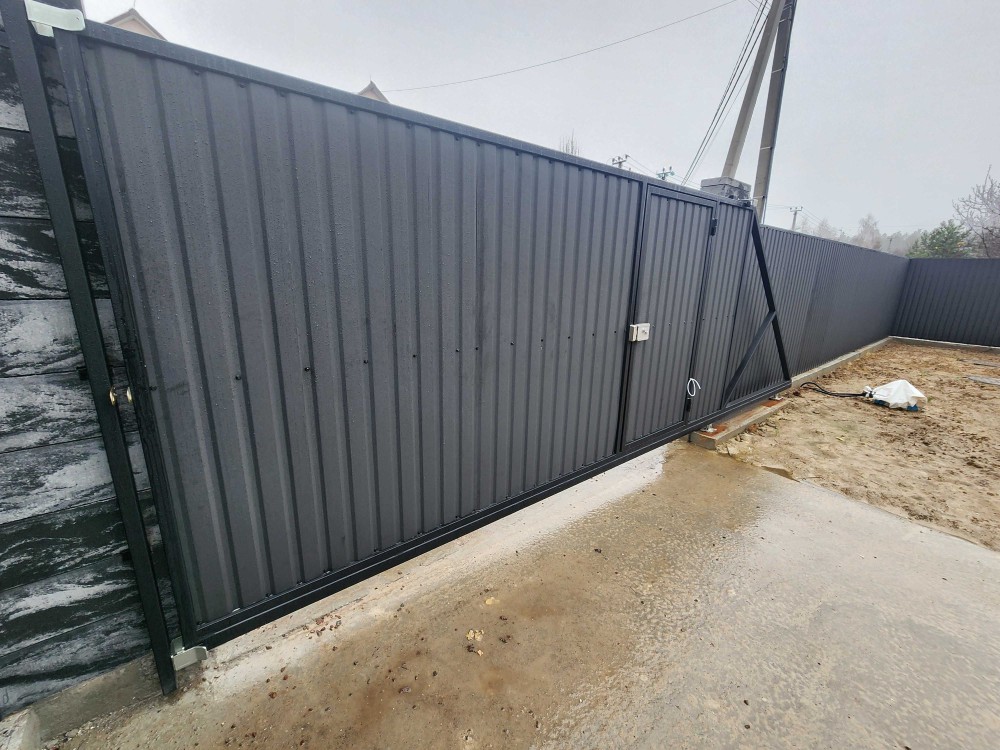 По периметру паркан, відкатні ворота.