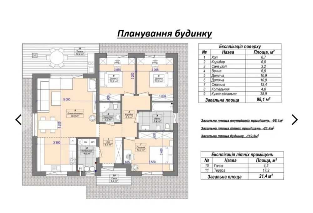 Площа будинку: 100 м²