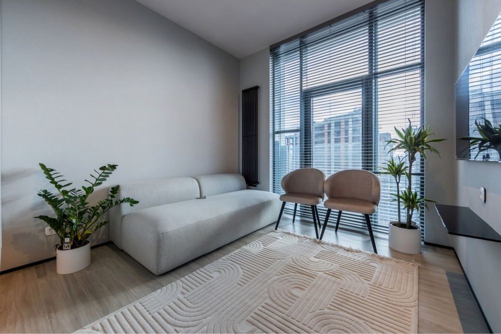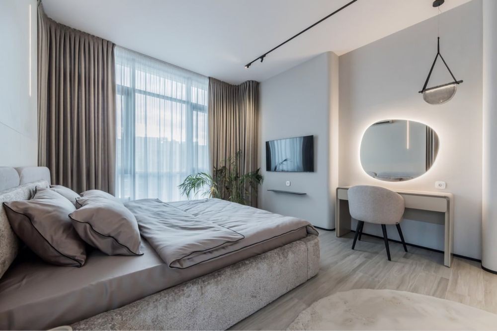 Висота стелі максимальна -2,9м. Двері прихованого монтажу під стелю. Трендові кольори та матеріали. Мармур, тепла підлога, радіатори як елементи декору, меблі з Cleaf та Saviola (Італія ) та інше