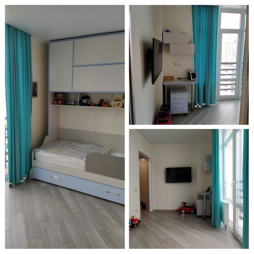 Якісні меблі: шафи-купе, дизайнерське ліжко, дитяче ліжко, вбудована кухня. В усіх кімнатах інверторні кондиціонери, холодильнік, посудомийна машина індукційна поверхня , бойлер , відеонагляд.
