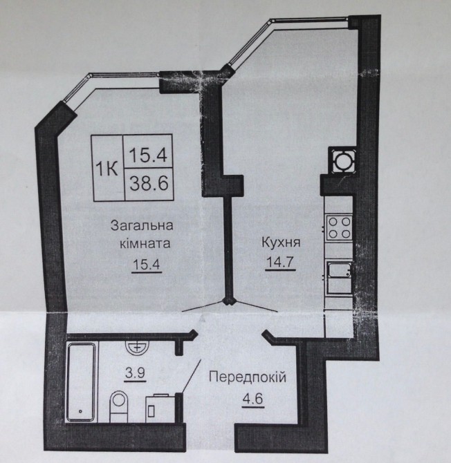 Площа: 38,6 м²