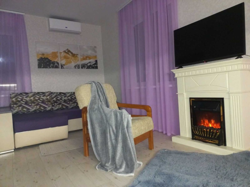 Затишок у вітальні додає електрокамін, який прикрашає інтер'єр і створює теплу атмосферу.
