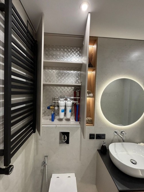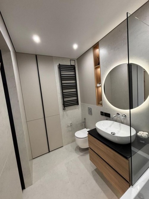 Простір продуманий до дрібниць ,багато місця для зберігання речей ,в кожній кімнаті стоїть кондиціонер на обігрів та охолодження, на підлозі вкладений кварцвініл ( виробник Німеччина ) зроблений якісний підігрів підлоги ванна ,кухня ,коридор ,стіни фарбовані ,бойлер на 120 літрів,прально -сушильна машина BOSCH, ,система фільтрації води,встановленні двері прихованого