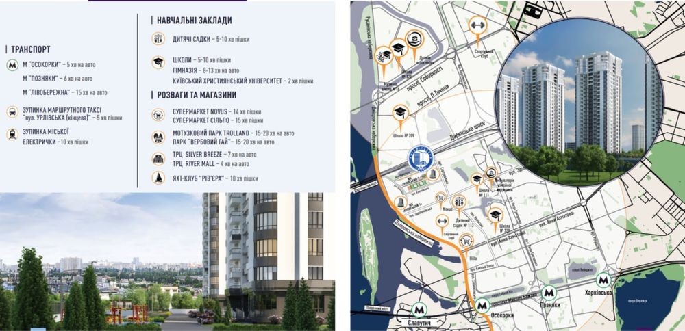 Продаж 2-кімнатної квартири в ЖК Урлівський-2, вул. Сортувальна, 5, Дарницький район. В ЖК 4 будинки, об'єднані одним стилобатом. Найближчі станції метро: "Осокорки", "Славутич", "Позняки".