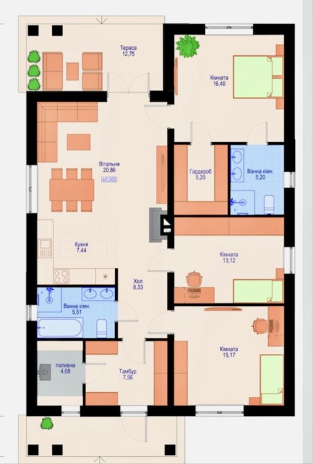 • Трикімнатна