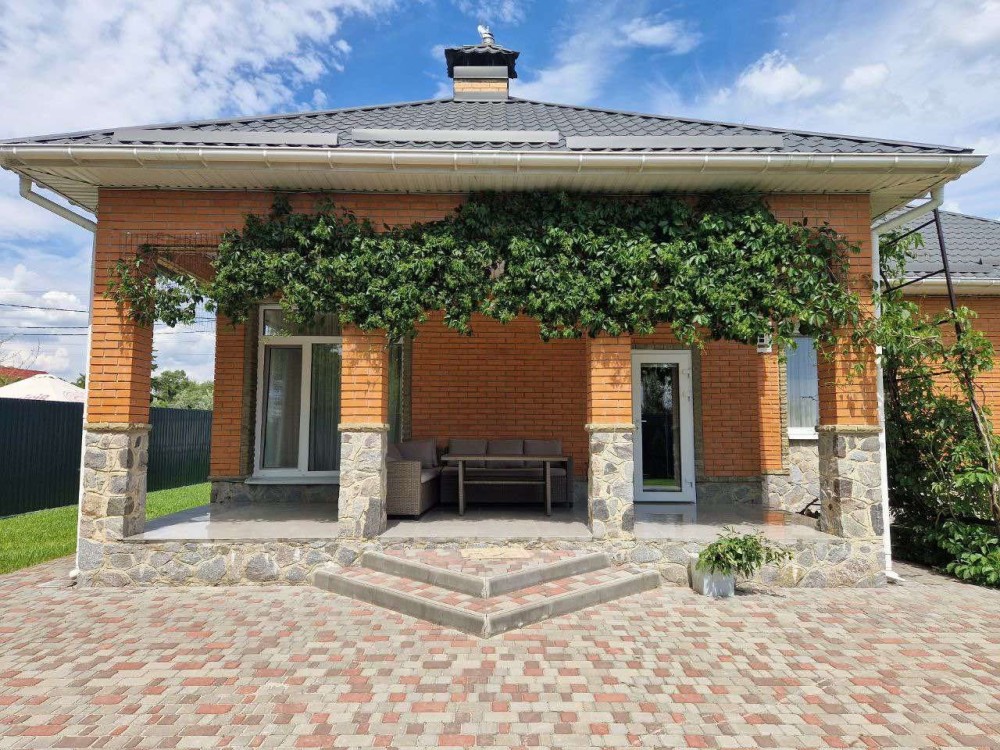 Терміновий продаж 2-о поверхового просторого і якісно-збудованого за індивідуальним архітектурним проектом, будинку площею 176 м² в с. Пухівка в Броварському р-ні. Будинок розташований в престижному закритому товаристві з охороною. Будинок побудований з червоної цегли, утеплений мінеральною ватою ватой ROCKWOLL 80 мм, фасад з цегли Фагот, кровля - фінська бітумна черепиця "katepal", двокамерні вікна "Века" з автоматичними захисними ролетами кольору золотий дуб, декоративна штукатурка, іспанская плитка, дуб паркет-дошка, імпортна сантехніка. Ділянка розміром 14 соток має правильну прямокутну форму, за проектом розміщено індивідуальний житловий 2-о поверховий будинок та гараж на 2 авто (53м2). Планування будинку забезпечує комфортне проживання великої родини. Планування: 5 спален, кухня, вітальня, 2 с/в. Якісний ремонт, дерев'яні меблі, кухонний гарнітур з натурального дубу. Під’їзд до будинка асфальтованою освітленою дорогою, глухий кут вулиці з виходом на піщаний пляж р. Десна, поруч ліс, озера, ресторан, магазин, зупинка громадського транспорту та бази відпочинку. Живописне, красиве місце, чисте повітря, для постійного проживання, все навколо забудовано. Інженерія та комунікації: Електрика — Виділена лінія електроенергії на 20кВт. • Газовый двоконтурний котел • Електрокотел • Діючий камін • Бойлер • Система очищення води • Кондиціонери • Підключено інтернет • Автоматичні ролети на вікнах. • Скважина • Каналізація — два переливні дренажні септики • Автополив • Сигналізація та відеоспостереження • Автоматичні ворота. Будинок продається з меблями та технікою. 225000 у. о. Можливий торг!