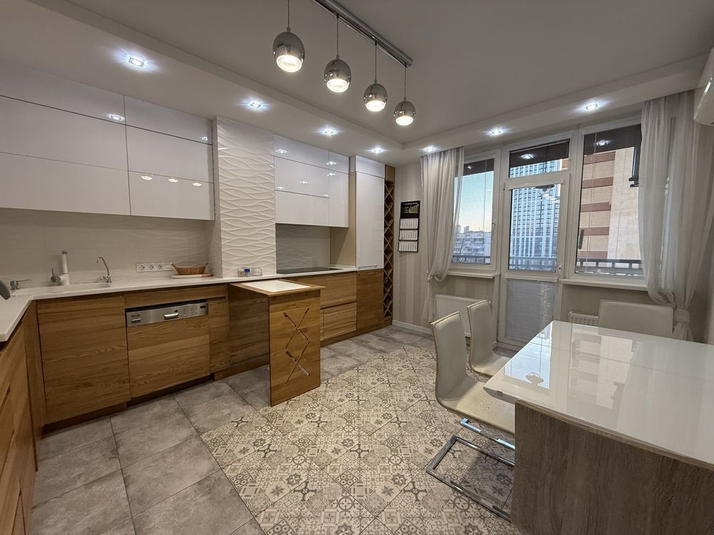 Квартира з авторським дизайном у новому будинку поруч з центром, якісні дорогі матеріали, квартира повністю мебльована, з усією необхідною побутовою технікою Miele, 2 санвузли, пральна та сушільна машини, фільтри на воду, підігрів підлоги, великі шафи-купе, сигналізація, Є все для комфортного проживання. Дуже зручне транспортне сполучення, близько до центру, поруч станція метро "Лук'янівська", супермаркети, магазини, банки, школи, садочки