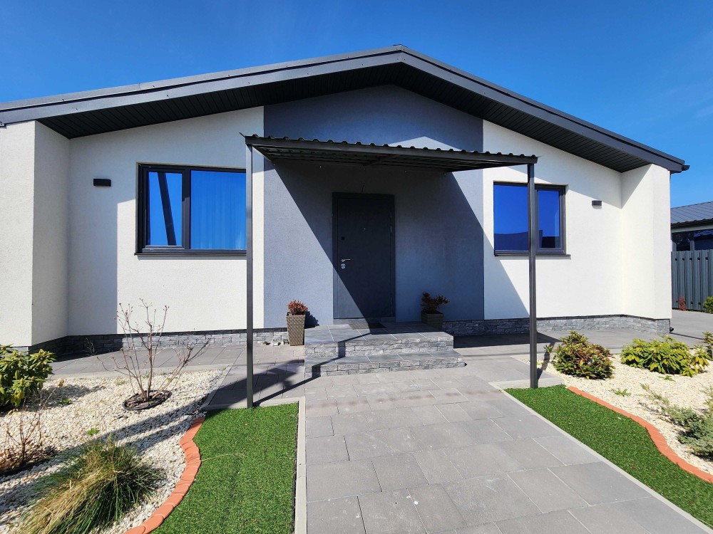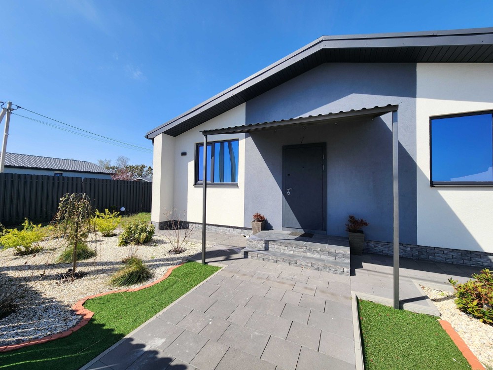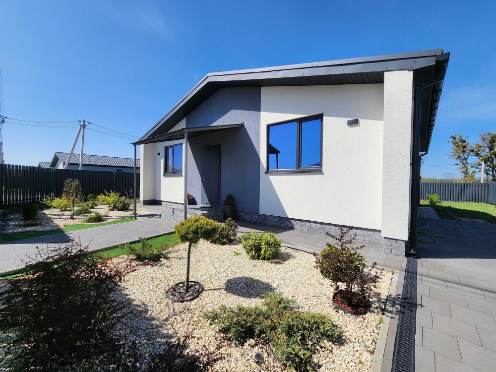 Дуже якісна забудова: стіни - керамоблок, утеплювач пінополістерол, фасад - декоративна штукатурка з елементами декору з клінкерної плитки.