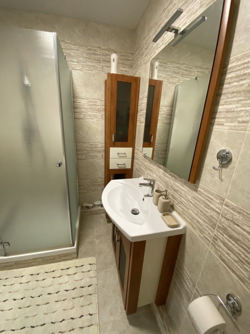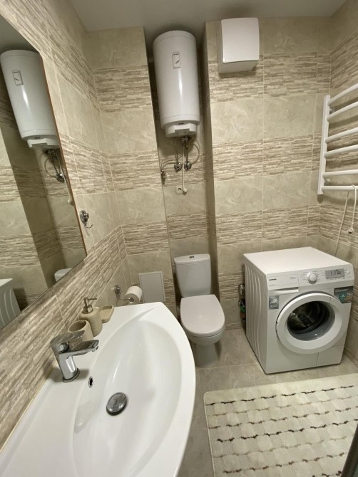 ​Ванна кімната: Повністю укомплектована сучасною сантехнікою. Стіни оздоблені кахлем із текстурою природного каменю. Встановлено душову кабіну, пральну машину та бойлер для безперебійного постачання гарячої води.