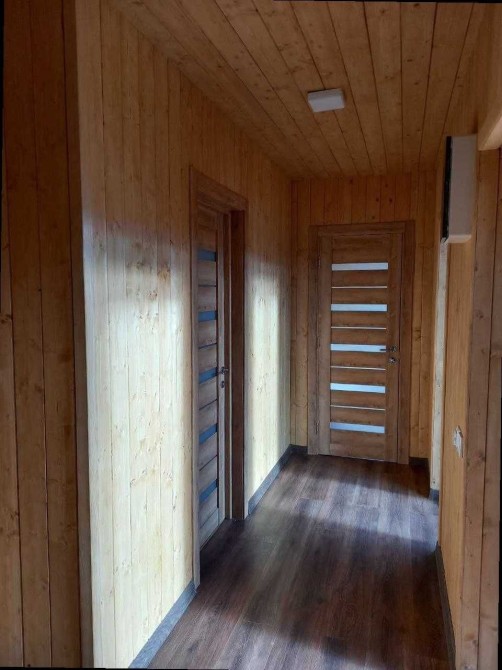 Чому це надійно: Ми не економимо на матеріалах. Стіни утеплені шаром 150 мм, а підлога і стеля — 200 мм базальтової вати. Вікна — енергоефективні п'ятикамерні. Все дерево пофарбоване якісною лазуррю.
