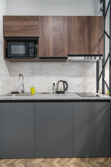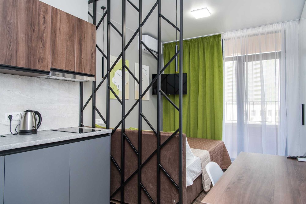 Хорошая квартира-студия в доме магазина "Виктор", меблирована, современній ремонт и дизайн, интернет, кухонные и банные принадлежности, бытовая техника. Ванна, Набор для душа, Гардероб, Охраняемая территория, Парковочное место. Отчётные документы