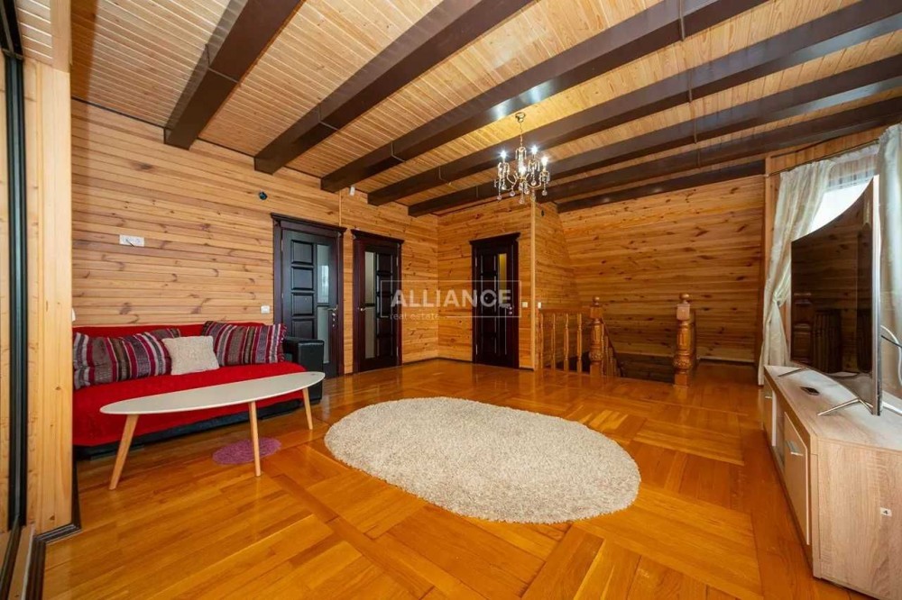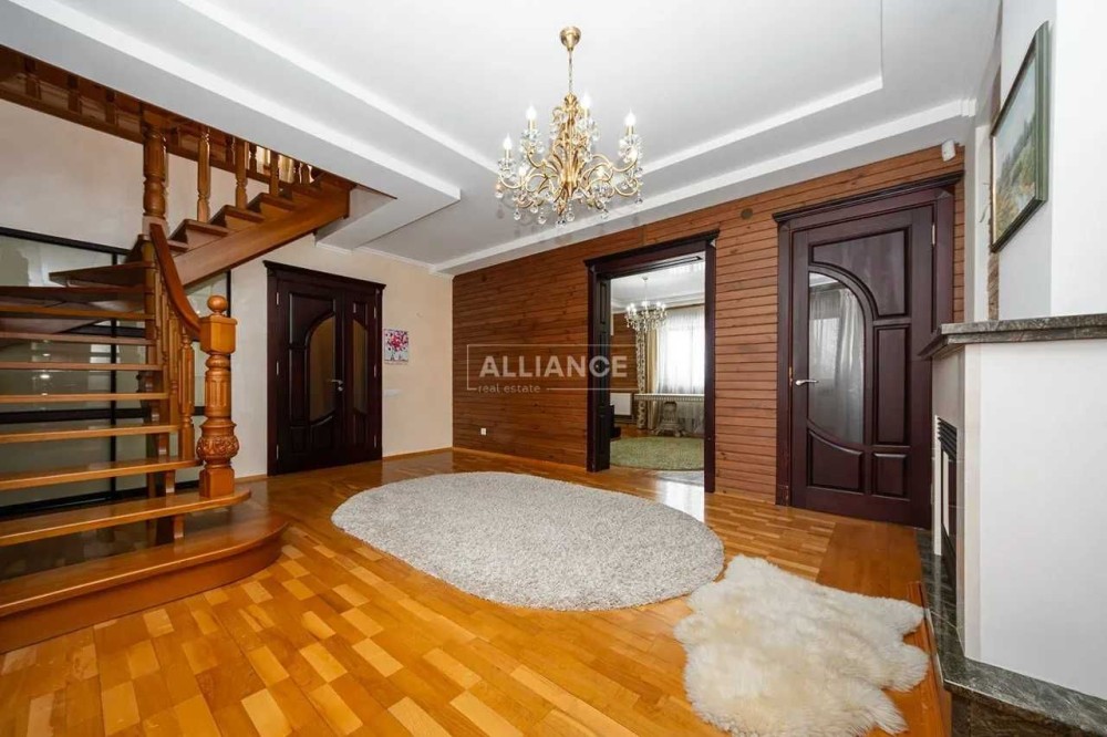 На першому поверсі зручне планування: коридор, велика прихожа, простора вітальня з каміном, де ви будете незабутньо проводити час з родиною та друзями, кухня з зоною відпочинку та робочою зоною, паливна та санвузол. На підлозі натуральний паркет, а на другий поверх ведуть добротні дубові сходи .