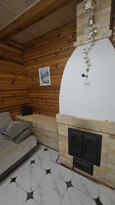 В будинку одна хозяйська спальня, дитяча, вітальня зі справжньою сучасною пічью на дровах (дрова є)