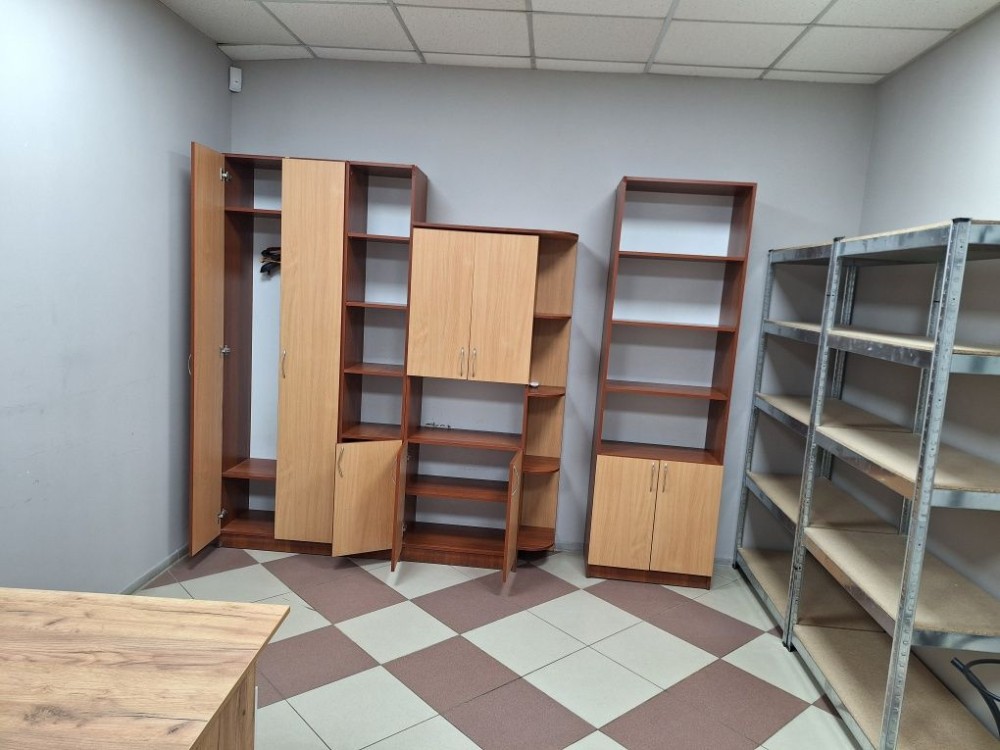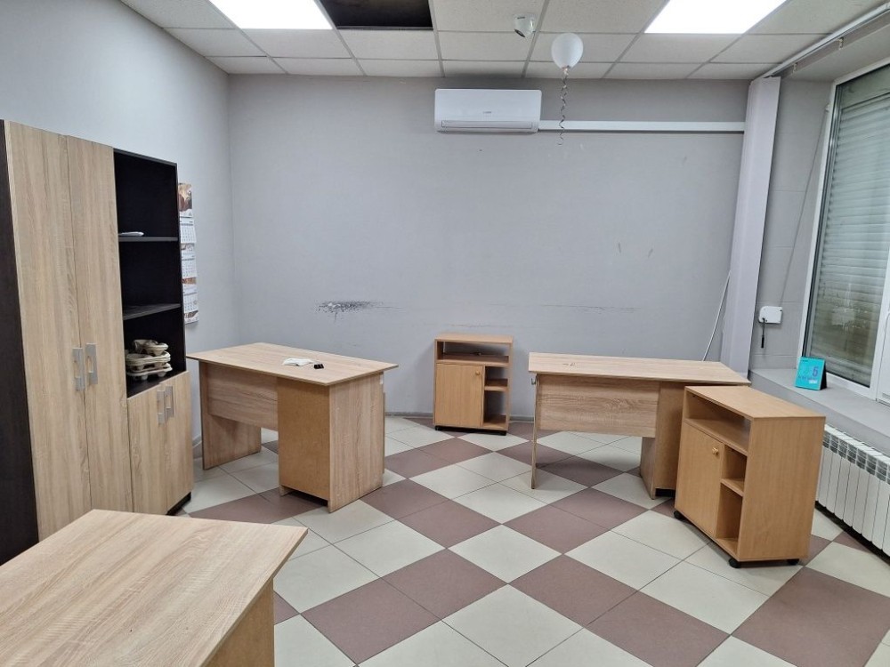Є кондиціонери в офісах,меблі столи,шафи..