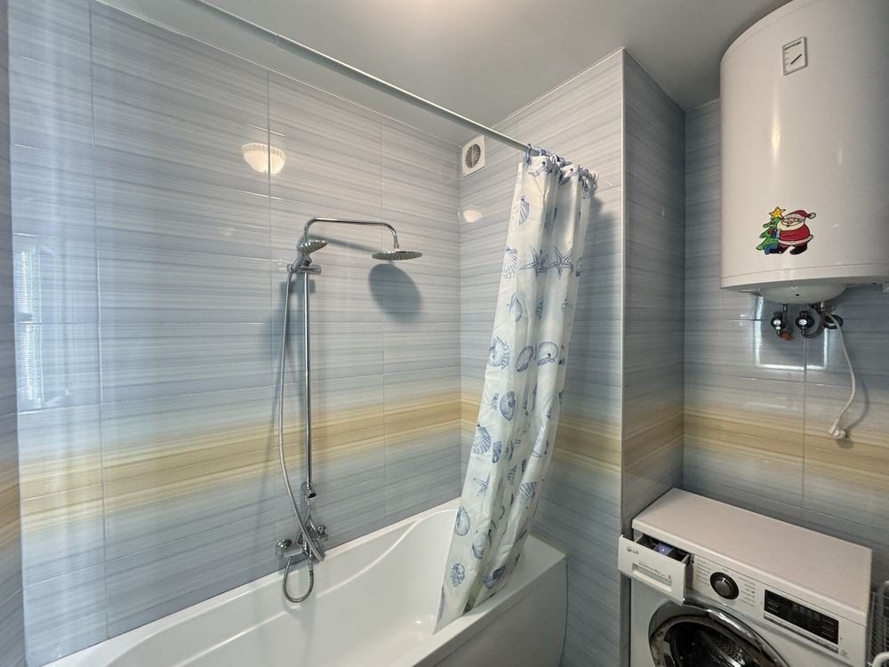 Укомплектована меблями та технікою: пральна машина, бойлер, холодильник, духова шафа, варильна поверхня, витяжка, чайник та телевізор.