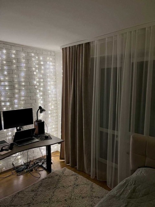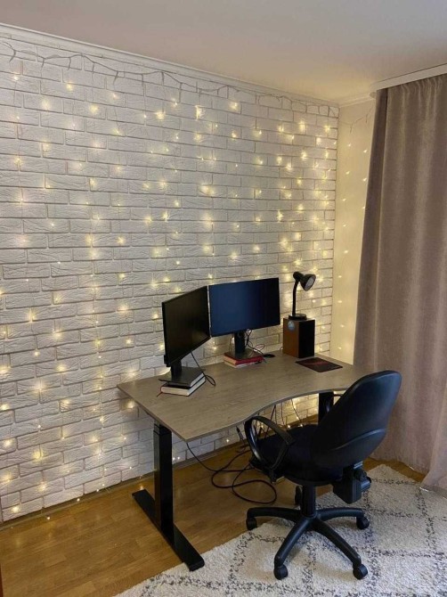 Для роботи з дому - зручний стіл з регулюванням висоти, монітори та швидкісний інтернет. Для активних мешканців є гантелі для тренувань удома.