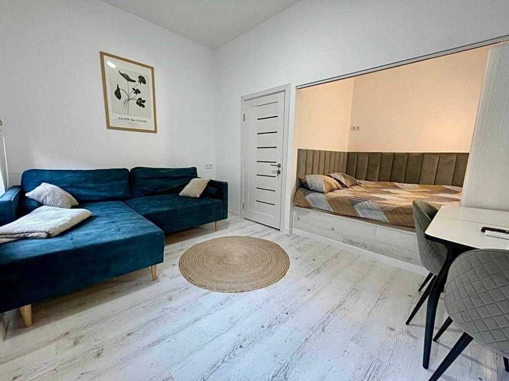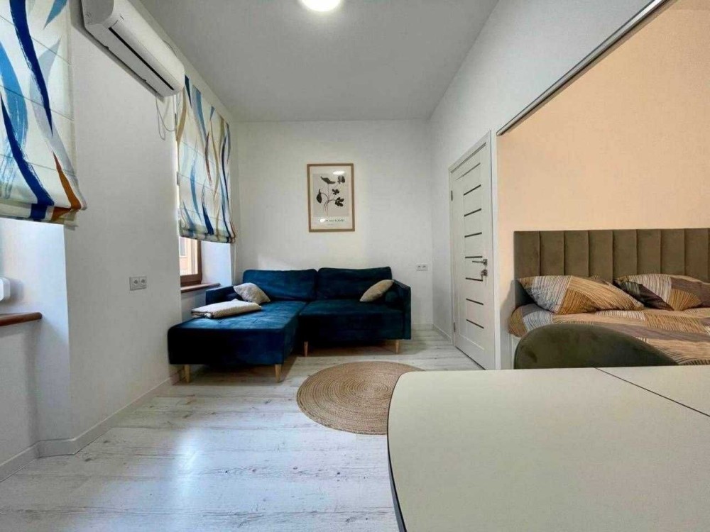 Виконаний свіжий ремонт з якісних матеріалів. У кімнаті просторе двоспальне ліжко розміром 2,2×2,4 м та великий зручний диван, який також підходить для сну. Є розкладний стіл - зручно для роботи або прийому гостей.