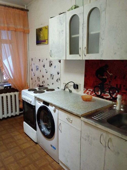 В наявності холодильник та нова пральна машина. У кімнаті новой диван та шафа. На кухні новий столік та стільці. Плита електрична.