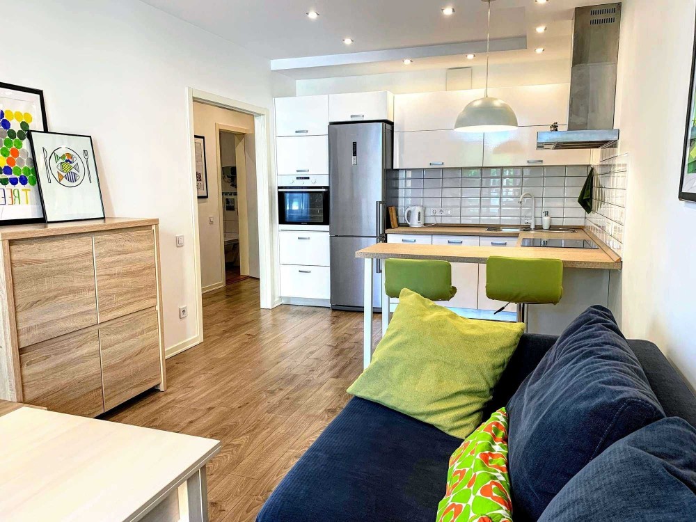 Світла і затишна квартира в сучасному ЖК з охороною і резервним живленням опалення та водопостачання. Квартира складається з кухні-вітальні,окремої спальні з гардеробом і суміжного санвузла. В наявності всі необхідні меблі та побутова техніка. ЖК розташований поруч з лісопарковою зоною,має розвинену інфраструктуру: в пішому доступі ресторани, супермаркети, спортзал, банки, клініки,спортивні та дитячі майданчики.