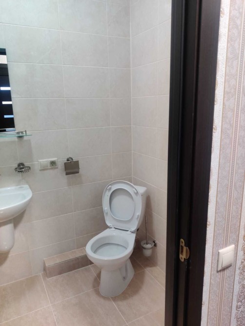 Санвузол у сучасній плитці, повністю обладнаний.