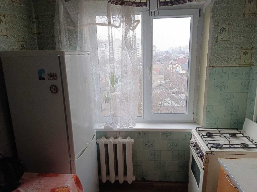 Здається двокімнатна квартира. Є холодильник і пральна машинка. Великий двоспальний диван. Квартира в звичайному житловому стані.