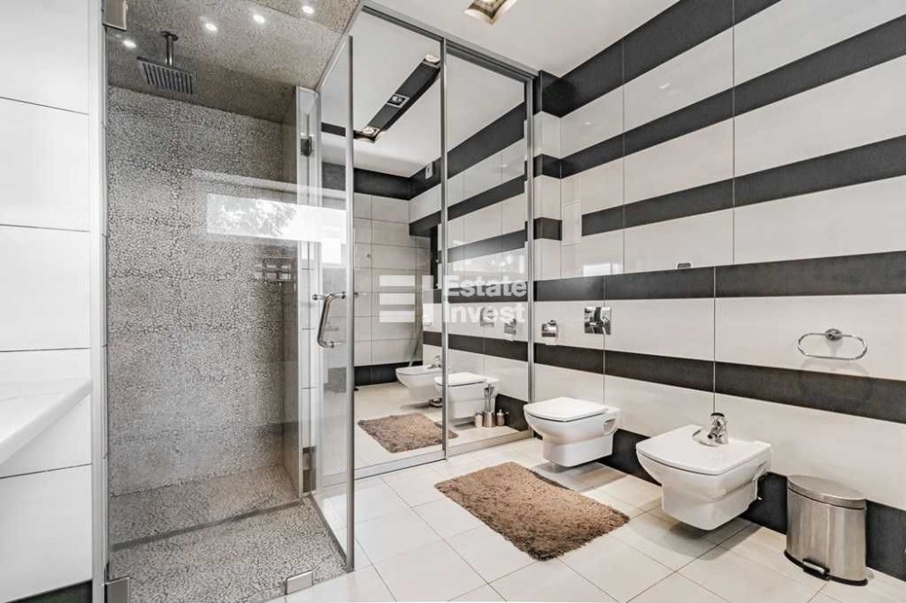 2-й поверх — 3 спальні, 2 санвузли (один з ванною, другий з великою душовою кабіною, в кожній змонтовані унітази та біде, є вбудовані шафи-купе, в яких розташовуються туалетні приналежності, постільна білизна та рушники, а також розташована велика пральна машина з можливістю завантаження до 8 кг білизни) та головна вбиральня.