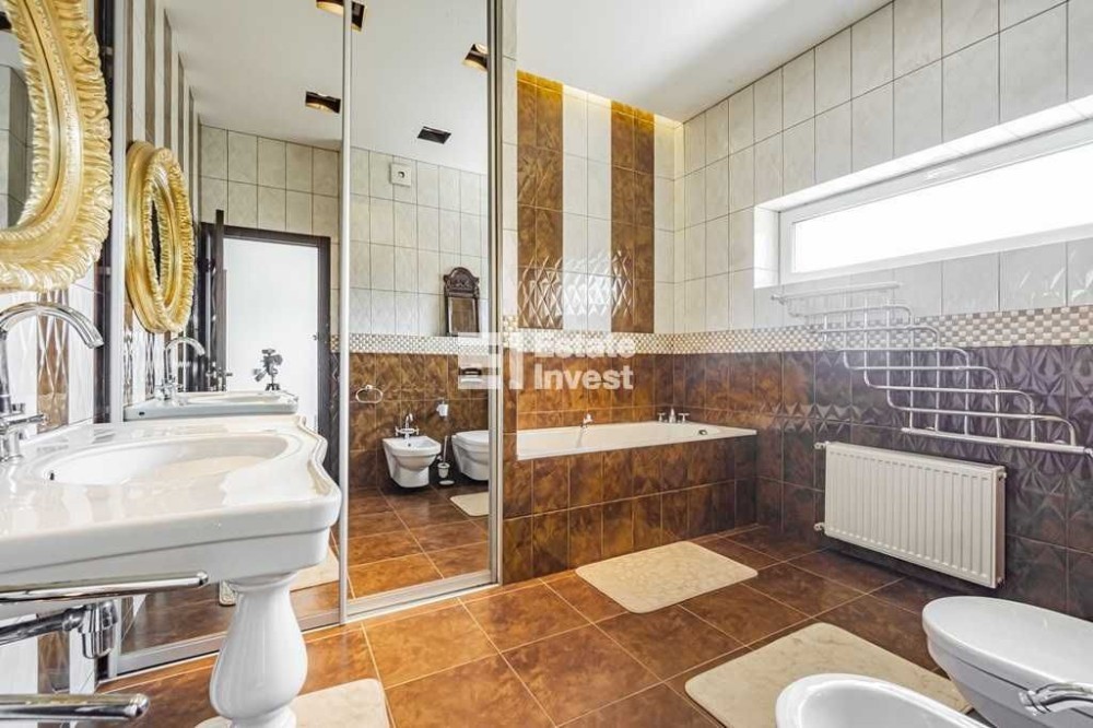 Село Забуччя. 13 км від КП по Житомирській трасі, 19 км від автост.Дачна. 4 км до ЖК Синергія (Ірпінь), 7 км до Бучі. Будинок має 6 кімнат (4 спальні), 2 зали, 4 санвузла, душова. Асфальтований під'Їзд.Будинок під охороною, камери відеоспостереження. Ділянка: Ландшафтний дизайн,басейн, автополив. Відкрита тераса з барбекю. Будинок має мансарду та цокольний поверх. На першому- хол та кухня-студіо, санвузол, туалет та гараж 35 кв.м.. На другому спальня та двоповерховий кабінет, який можно облаштувати під спальню. На третьому кабінет, спальня з санвузлом. Останній поверх- мансарда з санвузлом. На цокольному поверсі велика кімната( під спортзал)де є бігова доріжка, пральна, сауна,душова, техприміщення та 2 кімнати-кладові. На другому поверсі відкрита велика тераса, на третьому балкон. Підлога, керамограніт, плитка, ламінат. Газове опалення, підігрів підлоги на декількох поверхах. камін, сауна. 3 кондіціонера, газовий котел та електроболер. Інтернет оптоволокно.