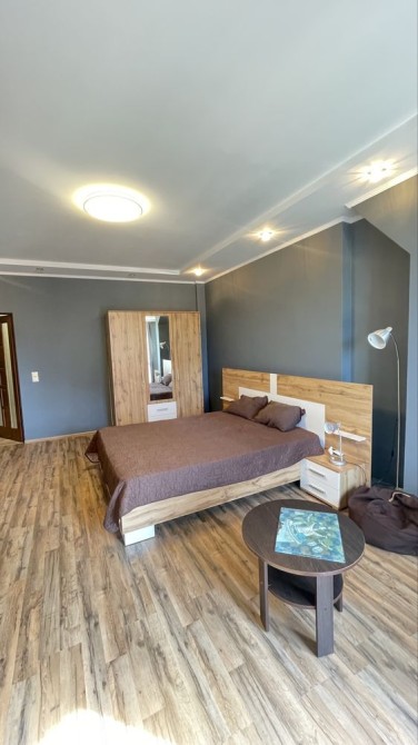 Здається сучасна квартира з гарним ремонтом. Простора кімната з великим ліжком, багато світла та затишна атмосфера.