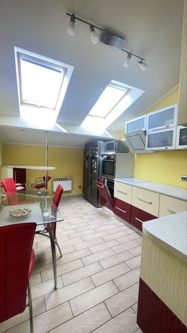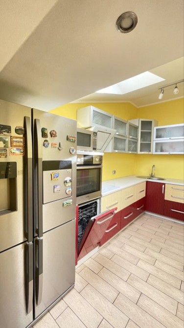 Кухня повністю укомплектована технікою: холодильник, духовка, посудомийна машина, мікрохвильова піч.
