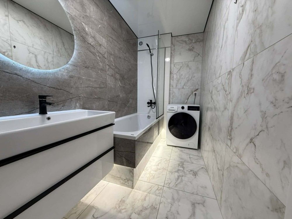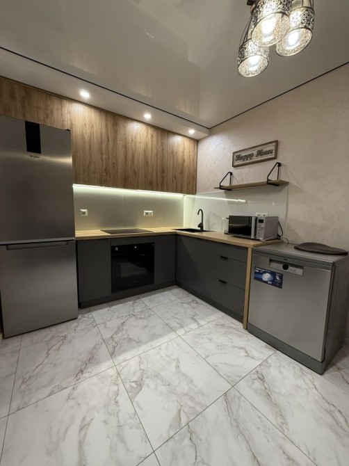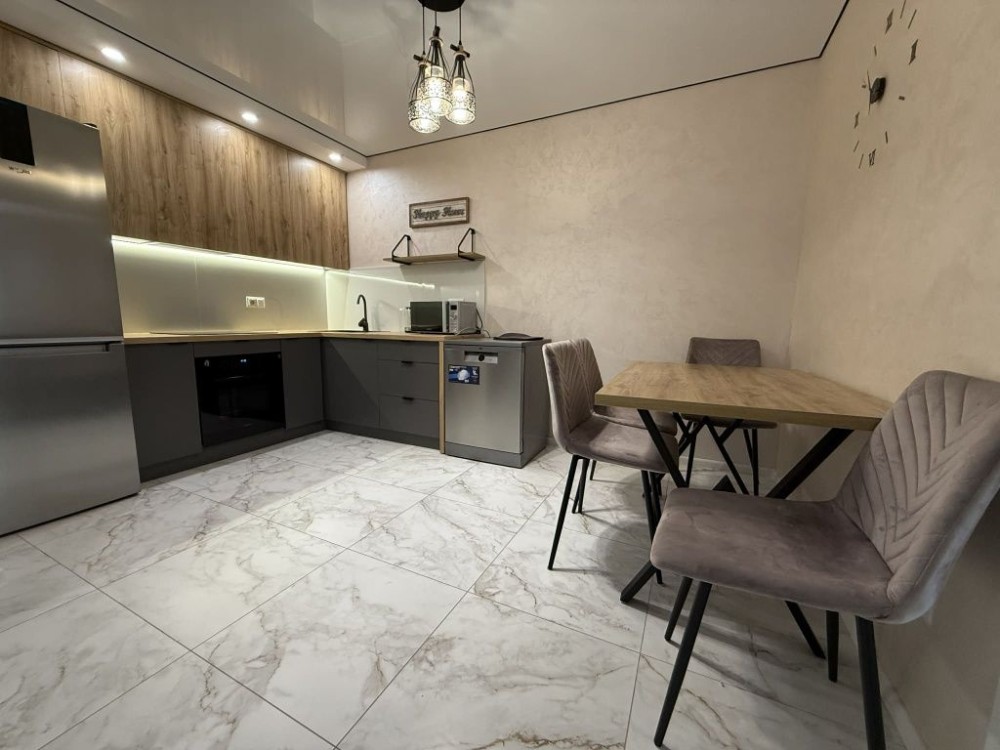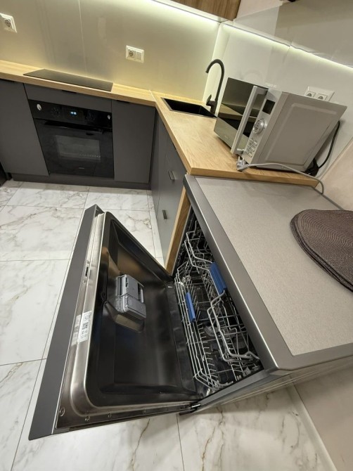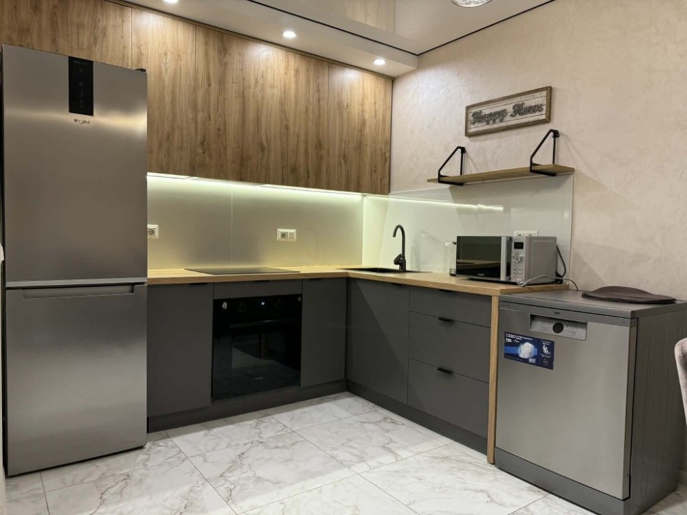 Повністю обладнана кухня: холодильник, духова шафа, індукційна плита посудомийна машина