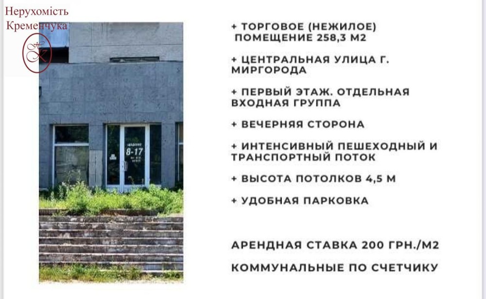 Здається комерційне приміщення в місті Миргород площа 258 м2 - фото 1