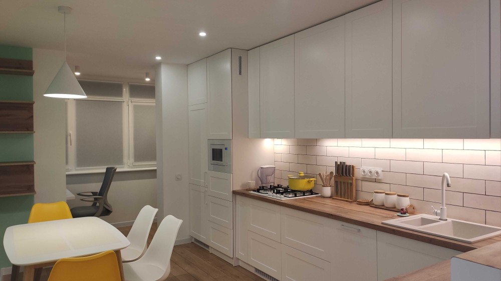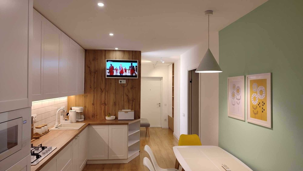 Квартира світла, з продуманим освітленням, виконана в сучасному мінімалістичному стилі. Ідеально підійде для однієї людини або пари.