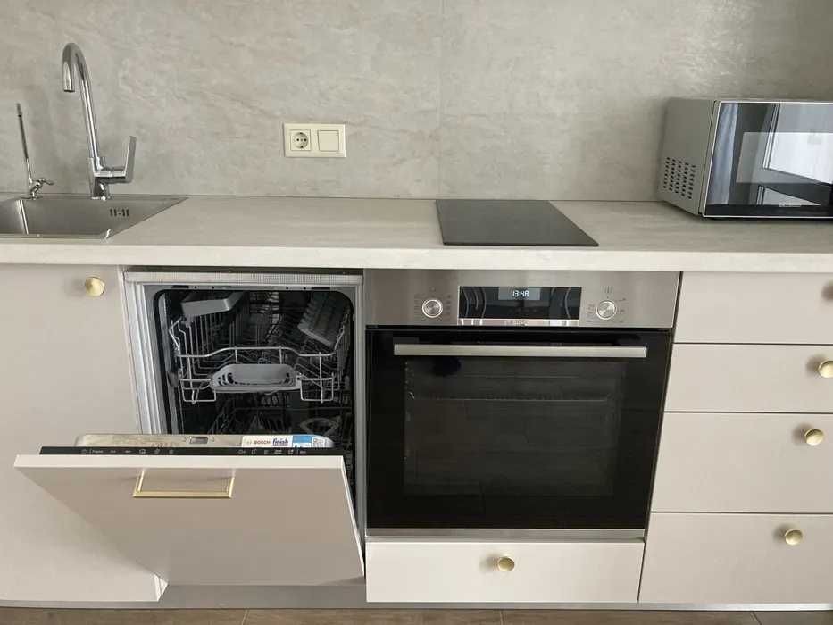 Квартира укомплектована всією необхідною технікою та меблями: встановлено 2 кондиціонери, пральну машину, бойлер на 80 л, посудомийну машину, фільтр для питної води, духову шафу, варильну поверхню, мікрохвильову піч, холодильник та пилосос.