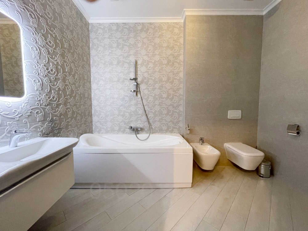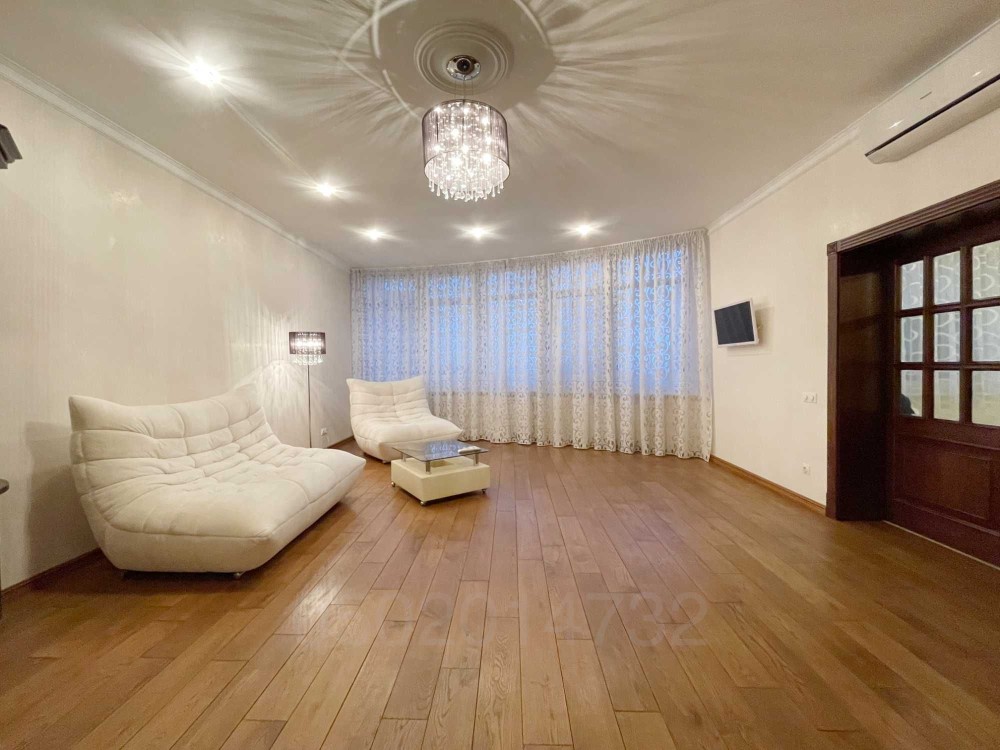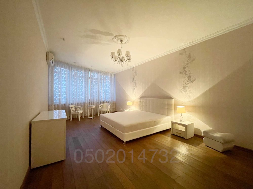 Світла, простора, двостороння квартира загальною площею 160м2. Кухня 25 кв м., вітальня 40 м кв, спальні 23 і 30 кв м відповідно, кожна зі своєю гардеробною. Висота стелі 3 метри.