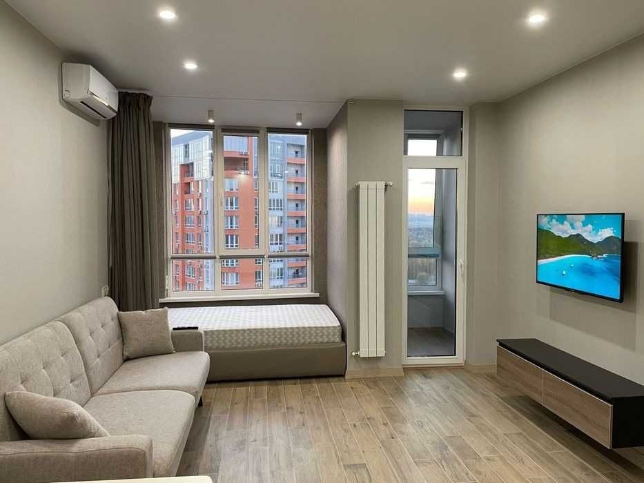 Здається в оренду 1-кімнатна квартира-студія в ЖК «Каховська» на вулиці Каховська, 62А, у Дніпровському районі Києва, поруч із метро Лівобережна.