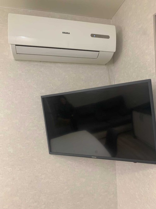 Оснащення: Повний комплект побутової техніки (холодильник, варильна панель, духовка, мікрохвильова піч, пральна машина, пилосос, кондиціонер, TV).