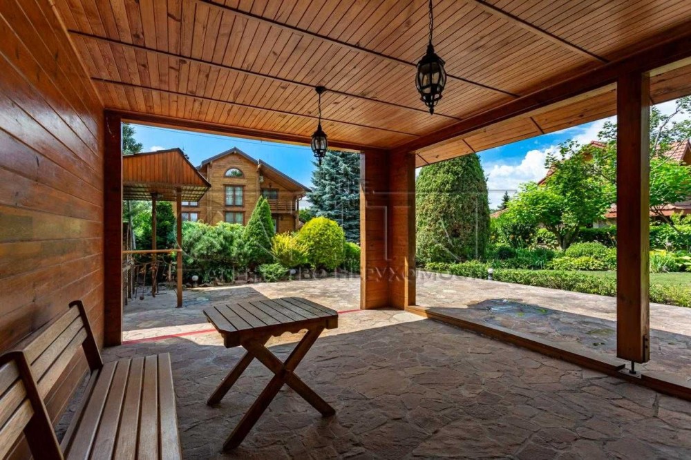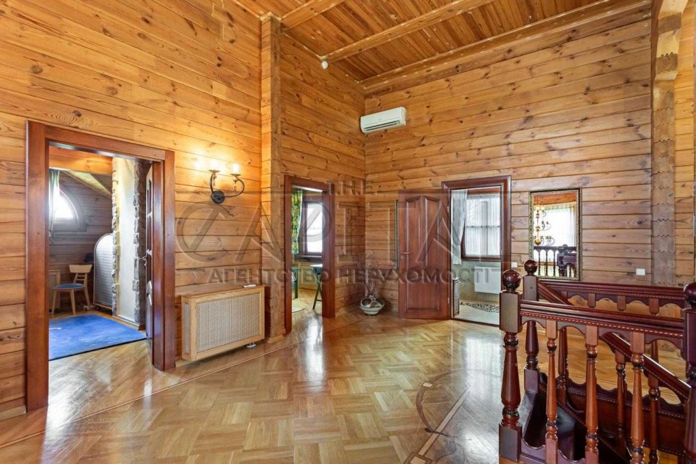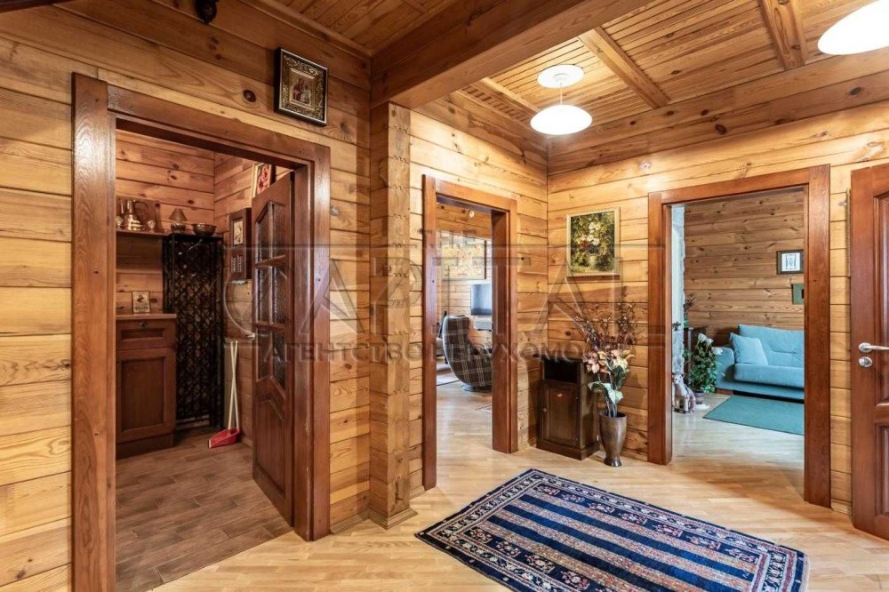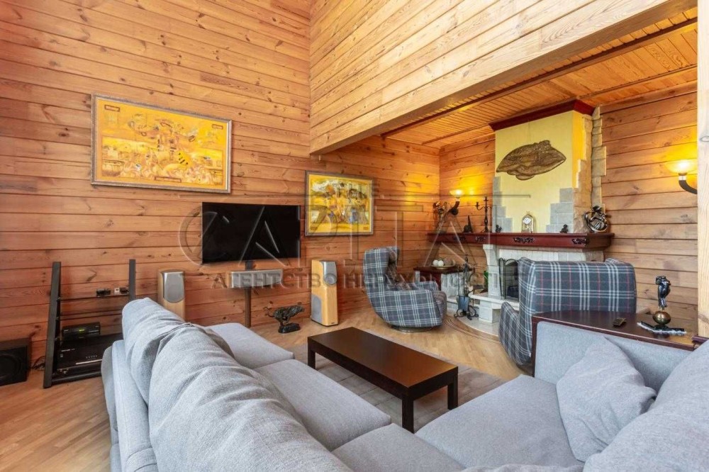 Будинок розташований у закритому котеджному містечку Авгур в Романкові, всього за 35 хвилин на автомобілі до Хрещатика. Побудований зі зрубу, він дуже затишний, теплий та ідеально підходить для сімейного життя.