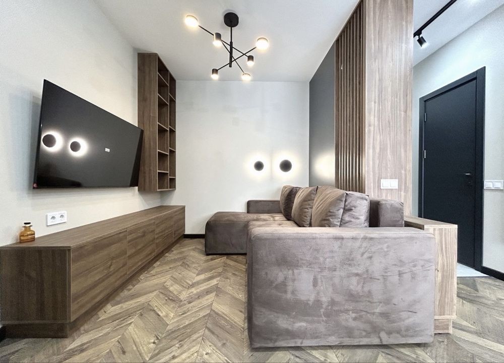 Пропонується в оренду стильна та сучасна 1-кімнатна квартира з продуманим плануванням формату “півторакімнатної”. Квартира має простору кухню, затишну зону відпочинку з розкладним диваном і телевізором, а також окрему спальню. Додатковою перевагою є місткий гардероб.