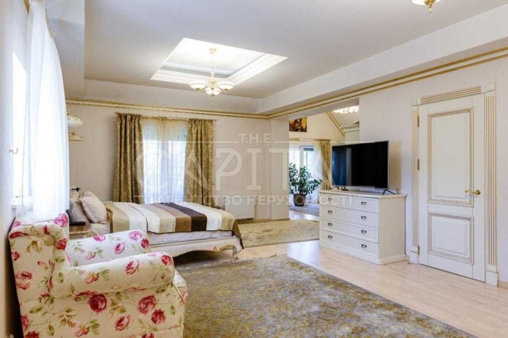 Дом 650 м Конча-Заспа ,30 соток лес,своё большое озеро,Французкий городок.Три спальни,5 санузлов,кухня столовая гостиная опенспейс,Арабская комната с кухней и печью для приема гостей,бассейн спа зона,две большие гардеробные,постирочная,видео наблюдение,охрана.