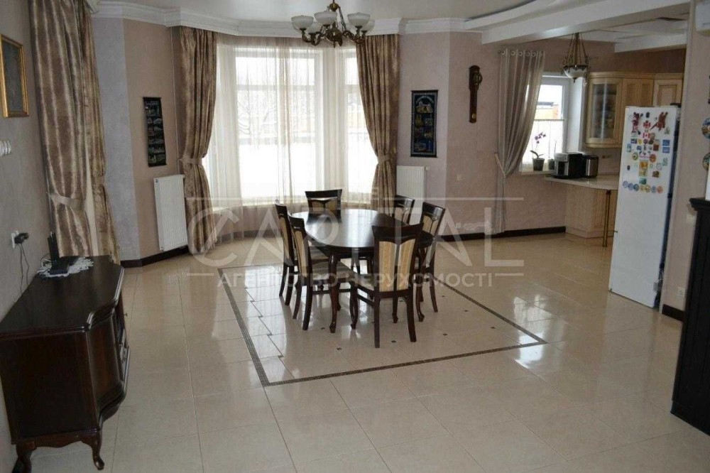 Будинок площею 370 м² розташований на доглянутій ділянці 12 соток, що забезпечує приватність та простір для життя за містом.