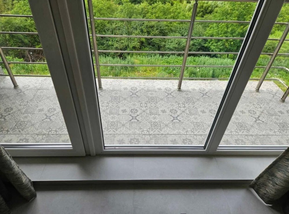 --Панорамні вікна у двір/сад, є балкон.