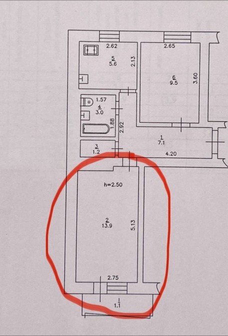 • Площадь кухни 6 м2