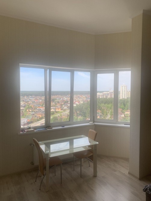 43 метри, 20-й поверх (1 поверх сходами від ліфта)і. Ремонт 2018 року. Є пральна, телевізор, бойлер, холодильник, витяжка, варочна на 2 секції. Диван, крісло, стіл, стільці, кухонний гарнітур. Висота стелі 3,5 метри. Шикарний вид на ліс і місто. Вартість 9.000. Застава 9.000