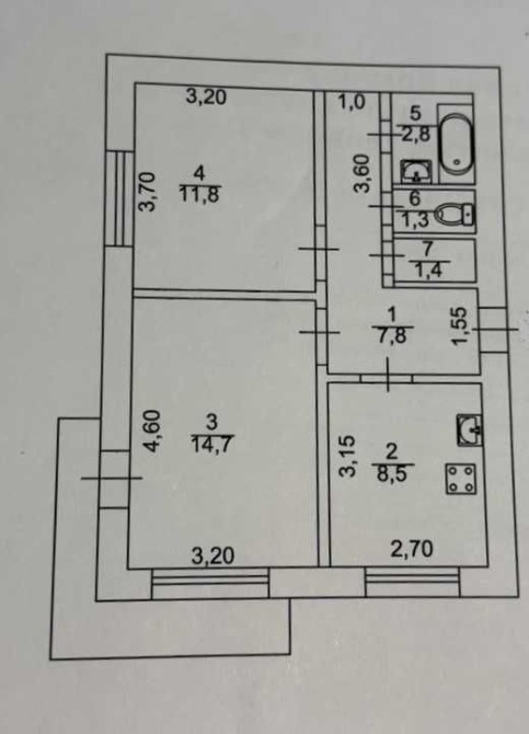 Кухня - 9 м2, кімнати - 15 м2. і 12 м2.